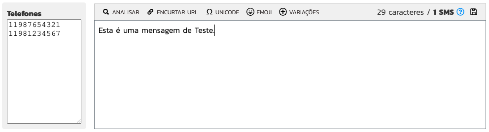 | Analizar | Analiza el mensaje SMS e informa si hay errores o restricciones en el envío según el contenido. |